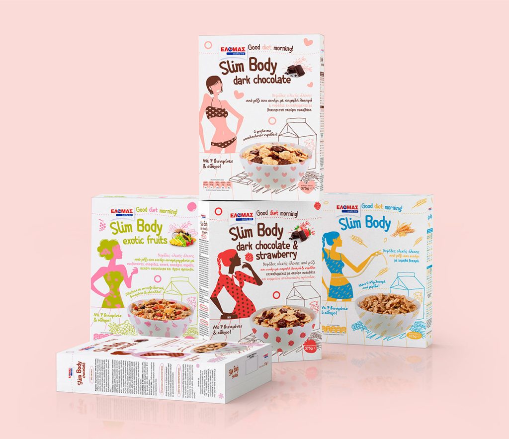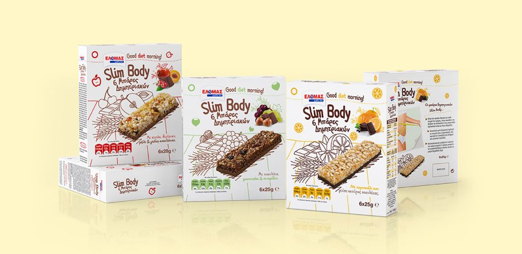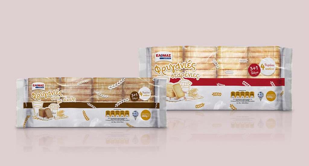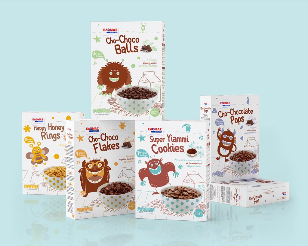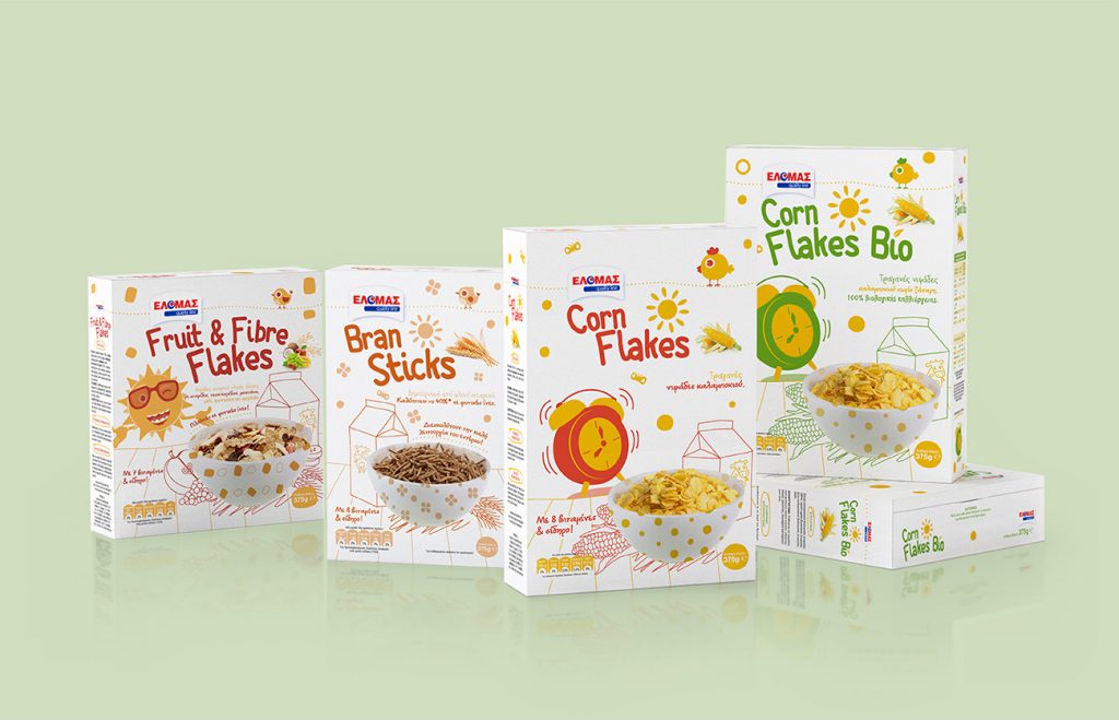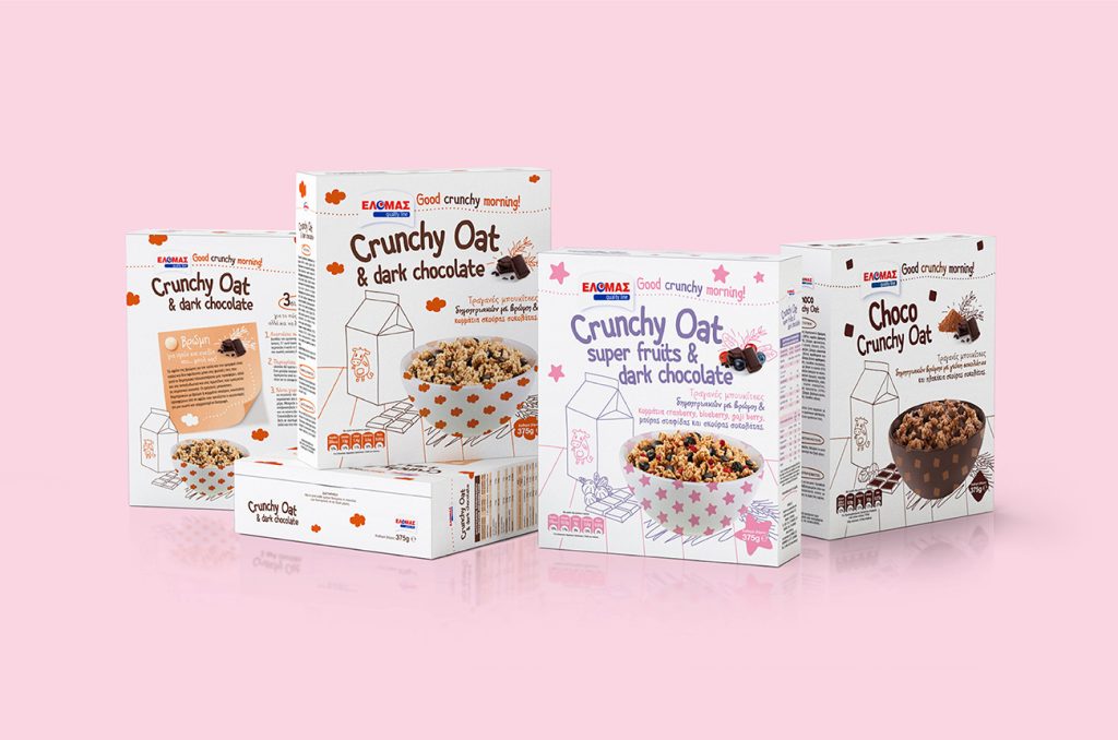 The design: Our dynamic client ELOMAS encouraged us to make their products more fun, as modern Greek families are increasingly welcoming them to their tables. For this reason, we let our imagination run wild, creating “faganes” (little munchers) for children’s “slim body” and “crunchy oat” for the whole family, bars, flakes, and granules, all in paper packaging, with “woke” characters, funky designs, nutritional advice, and an attractive look! In the same modern spirit, we created more products for the table: toast bread, eggs, rusks, and packaging for classic and beloved cookies. Colours and looks that highlight each product’s contents. Design and elements that whet the appetite.