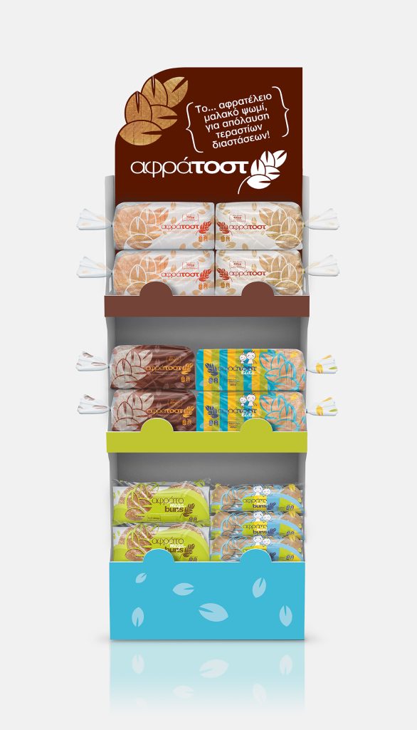 Το design: «Γήινο», υγιεινό, διάφανο, φιλικό και παιχνιδιάρικο. Το κατάλληλο design για το extra μαλακό ψωμί με γεύση που γεμίζει το στόμα! Το logo, η τυπογραφία, η ονομασία συνάδουν με όλη την ευρύτερη γκάμα και είναι εύκολα κατανοητή όλη η σειρά, χρωματικά και οπτικά.